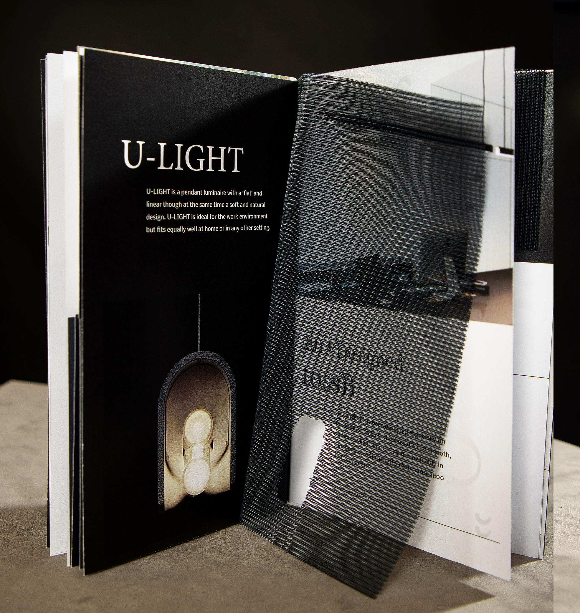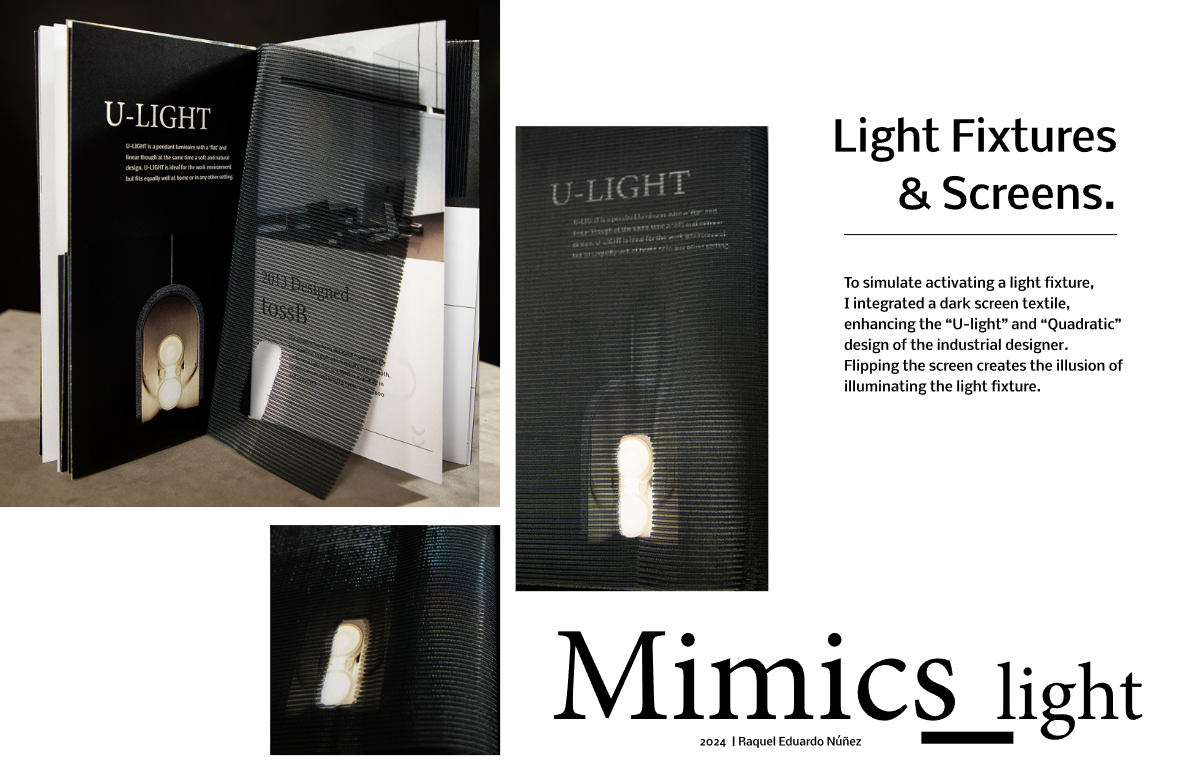 Harmoniously combining minimalism, through modern interactive feature. Simulating a light fixture, this integrated dark screen textile creates the illusion of light. Concisely capturing Alain Monnens’ work through a visually compelling design.